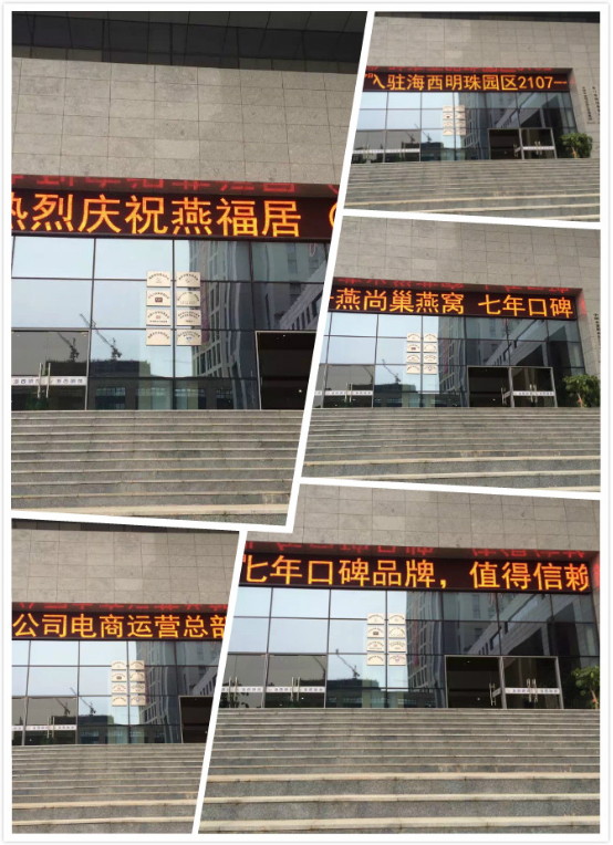剛到地方就看到商務園區里LED牌流動著燕尚巢醒目的字眼:“熱烈慶祝燕福居(廈門)商貿有限公司商務運營總部入駐海西明珠園區2107--燕尚巢燕窩,七年口碑值得信賴”瞬間感覺高大上。